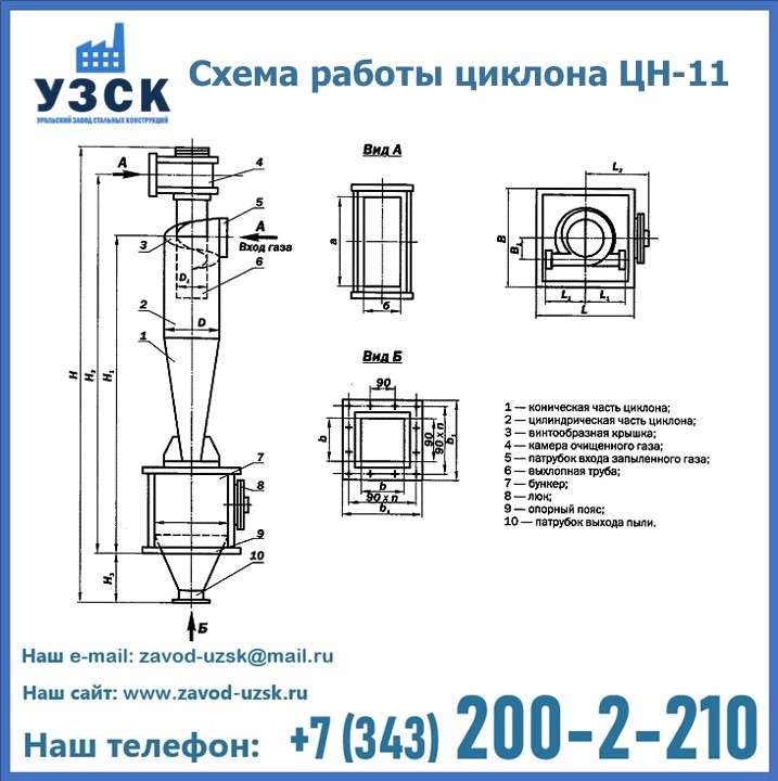 При этом ощутимой разницы в цене между универсальным и узконаправленным, подобранным в соответствии с конкретными техническими требованиями циклоном, нет. Стоимость воздухоочистительного оборудования типа циклон обусловлена маркой и толщиной стали, из которого он изготовлен, сложностью и специфичностью конструкции, наличием дополнительного оснащения (бункер, улитка и другие). При необходимости, на заводе УЗСК в Курске будет изготовлен циклон по индивидуальным техническим чертежам заказчика.