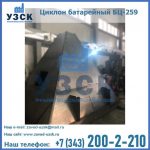 Батарейные циклоны модели БЦ-259 конструируются из нескольких металлических труб (выхлопных отводов), диаметр которых составляет около 26, 9 см. Элементы устанавливаются в параллельной плоскости и объединены корпусом с общей подводкой. Такие трубы предназначены для выхлопа и состоят из специальных заворачивающих лопаток, решетчатых элементов и опорных стоек футляра. Основную наружную панель оснащают патрубком для соединения и вибробункером, помимо этого, на панели устанавливают теплоизоляцию.
