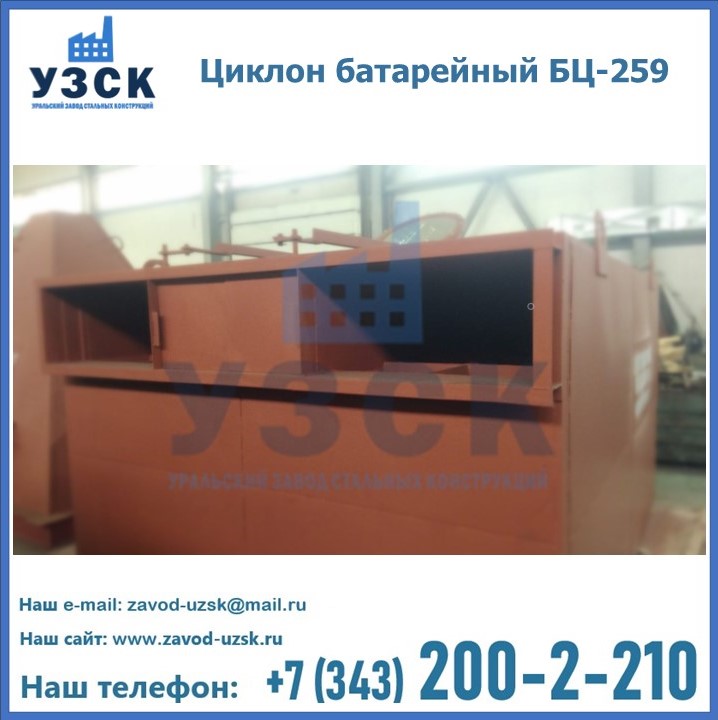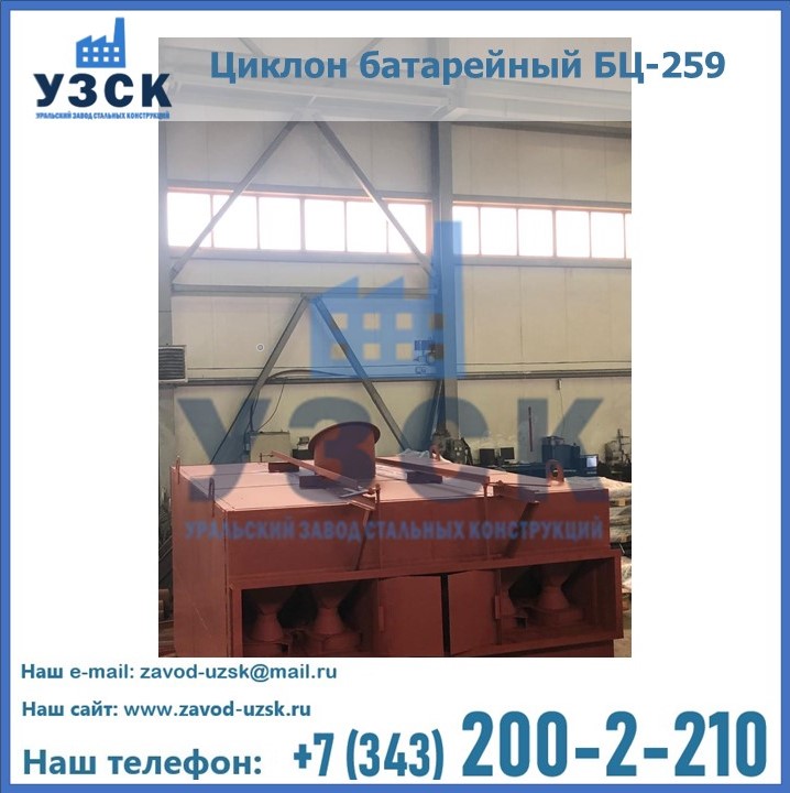 Приобрести качественное оборудование, в том числе, циклоны БЦ-259, можно в компании УЗСК в Курске. Мы предлагаем долговечную и надежную продукцию по приемлемой цене. Заказать и купить циклоны или другие изделия высокого качества можно через сайт Уральского Завода Стальных Конструкций, или позвонив по указанному в разделе «Контакты» телефону.