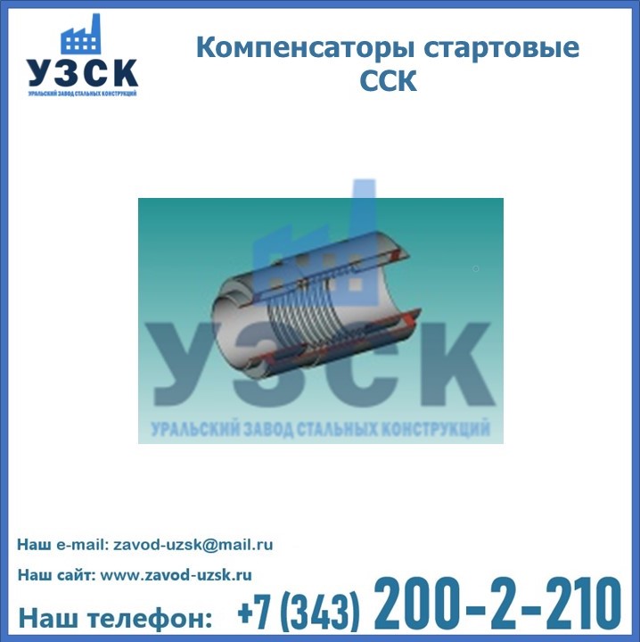 Стартовые компенсаторы, при прокладке прямолинейной системы труб, устанавливается через интервалы, установленные в проекте. В готовую траншею по всей протяженности системы, кроме участков, оборудованных ССК, засыпается грунт. В процессе первоначального нагревочного пуска трубной системы происходит удлинение труб, в результате этого сильфоны стартовых компенсаторов сжимаются. Внешняя стальная оболочка компенсаторов, после нагревания, приваривается. Трубы таким образом фиксируются в грунте, а последующие температурные перепады трансформируются в допустимые стабильные напряжения. Уральский Завод Стальных Конструкций предлагает готовые изделия, а также оборудование под заказ. Наш завод располагает всеми необходимыми возможностями для производства нестандартных компенсаторов ССК. Завод «УЗСК» предлагает большой выбор качественных и надежных сильфонных стартовых компенсаторов, полностью укомплектованных и готовых к эксплуатации. Мы гарантируем соответствие нашей продукции всем требованиям ГОСТ и ТУ, износостойкость и высокую производительность. Наше предприятие поставляет и производит оборудование, имеющее длительную гарантию и большой эксплуатационный ресурс. Если вы хотите заказать сильфонные компенсационные устройства ССК или другое оборудование с доставкой, наши специалисты помогут рассчитать стоимость транспортных расходов и организуют перевозку товара. Вы можете оформить заказ на продукцию на нашем сайте в Курске, для этого достаточно заполнить форму обратной связи.